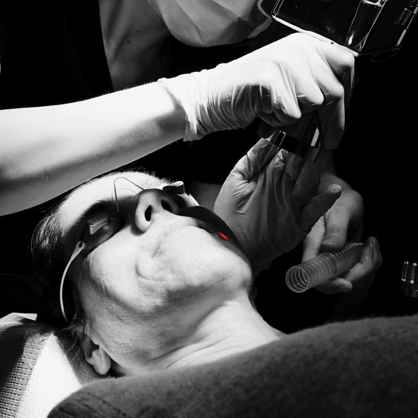 Ihre Haut wird gereinigt und Ihre Augen werden mit einer speziellen Schutzbrille geschützt. Der Spezialist verwendet einen Laser, um die Haut gleichmäßig zu behandeln. Je nach Größe des zu behandelnden Bereichs dauert das Verfahren 15-30 Minuten.